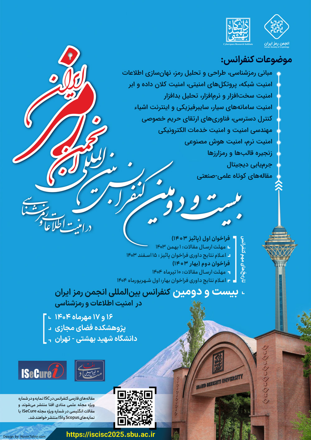 ما از پژوهشگران دانشگاهی و فعالان صنعت بهطور فعال برای ارسال مقالات دعوت به عمل میآوریم و بر ارائه مطالعات نوآورانه در طیف گستردهای از موضوعات تأکید داریم. هدف ما فراهم آوردن بستری پویا برای تبادل نظر میان اساتید، متخصصان و دانشجویان از سراسر جهان است تا بتوانند جدیدترین دستاوردهای نظری و عملی را در حوزههای گوناگون امنیت اطلاعات و رمزنگاری مورد بحث و بررسی قرار دهند.