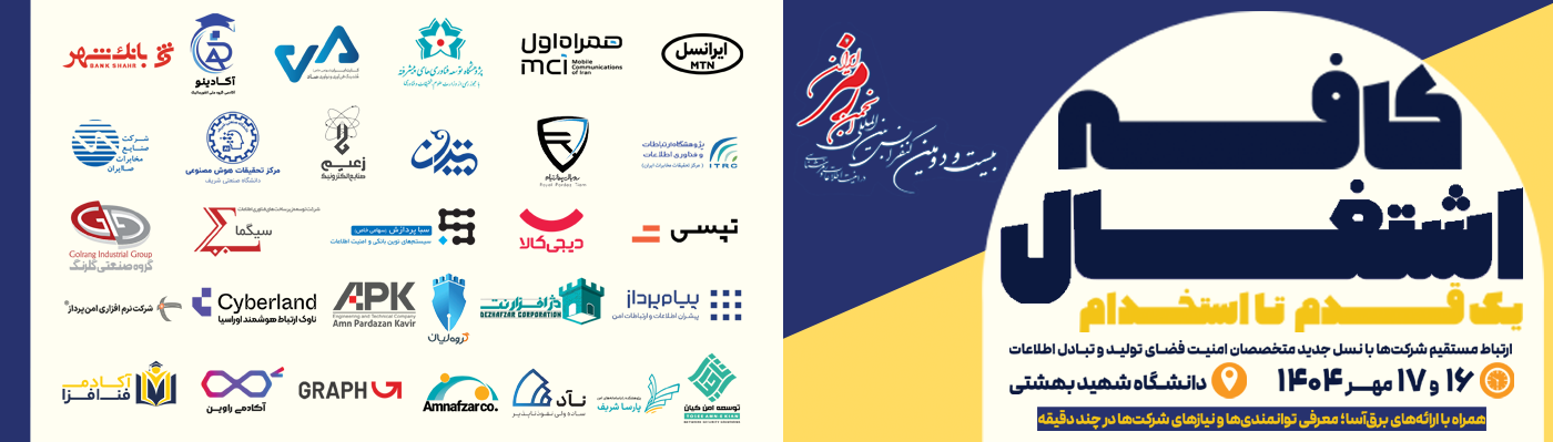 همچنین در حاشیه کنفرانس، رویداد کافه اشتغال با حضور بیش از ۳۰ شرکت فعال در حوزه امنیت اطلاعات برگزار شد. دانشجویان و شرکتکنندگان گرامی که مایلاند رزومه آنها در اختیار شرکتهای حاضر قرار گیرد، میتوانند از طریق لینک زیر اقدام کنند.
